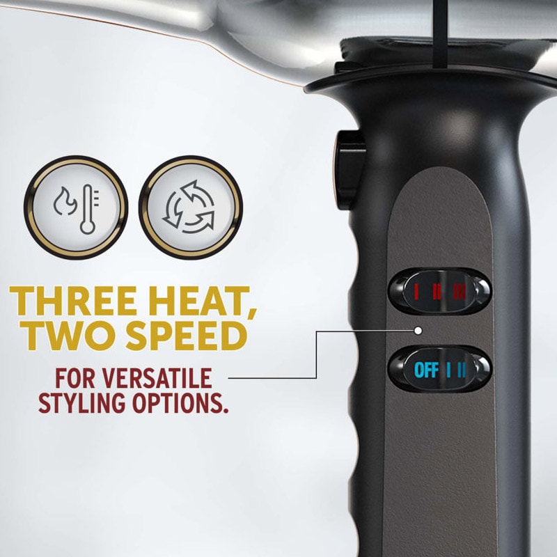 Style and set any look with the cold shot feature to lock the cuticle in place. Intended for use on all lengths and types of hair. Its powerful 2200 Watt motor provides very quick drying, saving time per client.